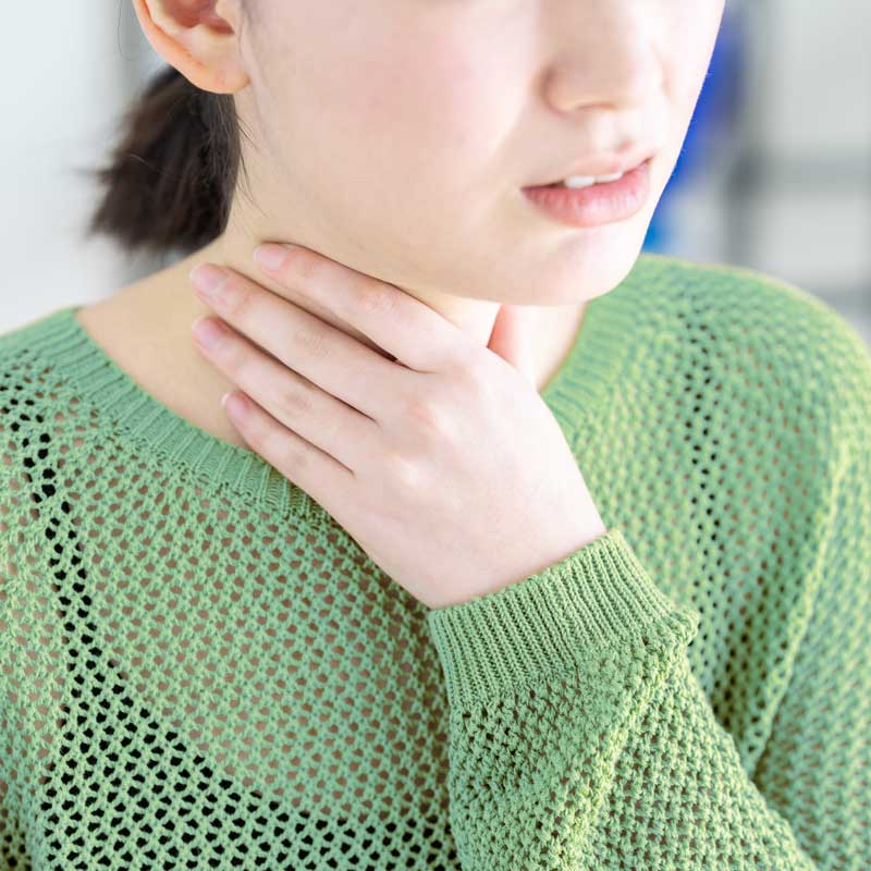 Dazu gehören zum Beispiel Halsschmerzen, Heiserkeit, Schluckbeschwerden, ein Kloßgefühl im Hals, häufiges Räuspern oder tastbare Knoten am äußeren Hals.